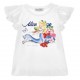 Dziewczęca, bawełniana bluzka Monnalisa z linii Bimba Alice. Bluzka z fantazyjnymi rękawkami, ozdobina nadrukiem przedstawiającym Alicję, bohaterkę bajki dla dzieci.