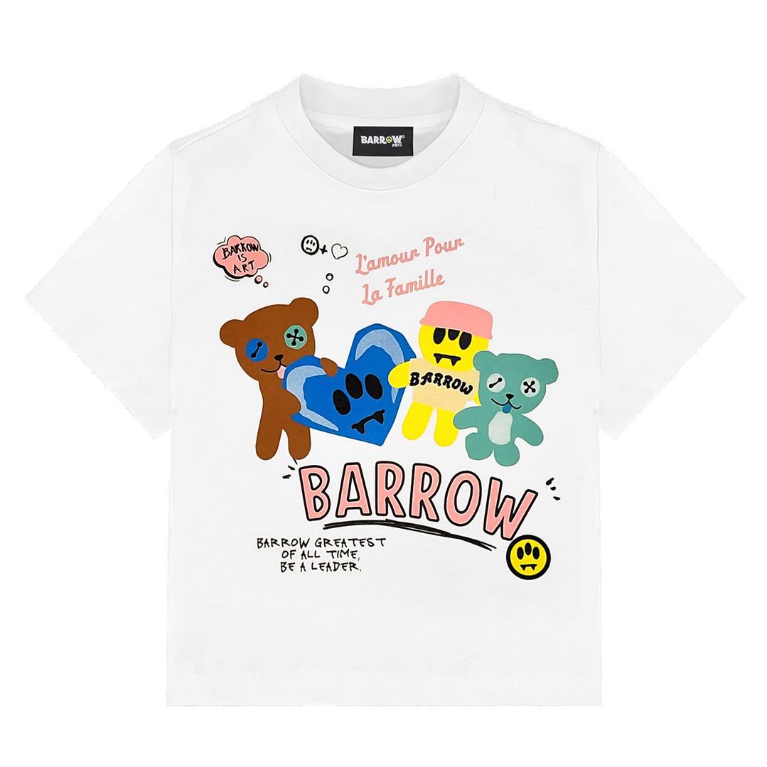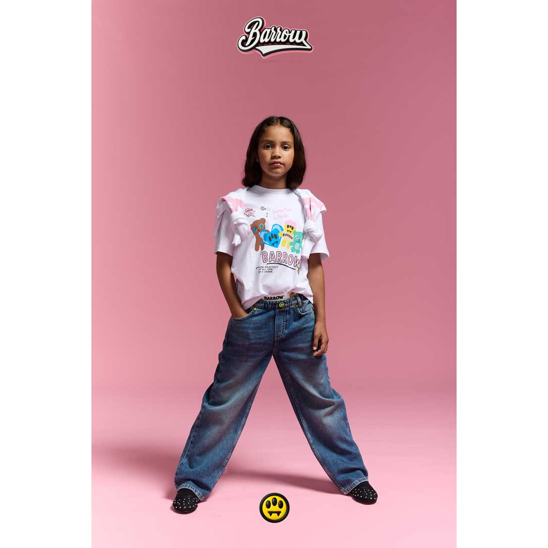 Biały t-shirt dla dziewczynki Barrow S6BKJGTH174 002, uszyty z miękkiej bawełnianej dzianiny. Fason klasyczny. Koszulka ozdobiona kolorowym, zabawnym nadrukiem.