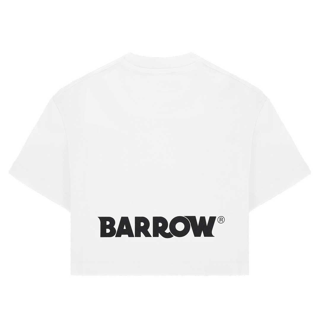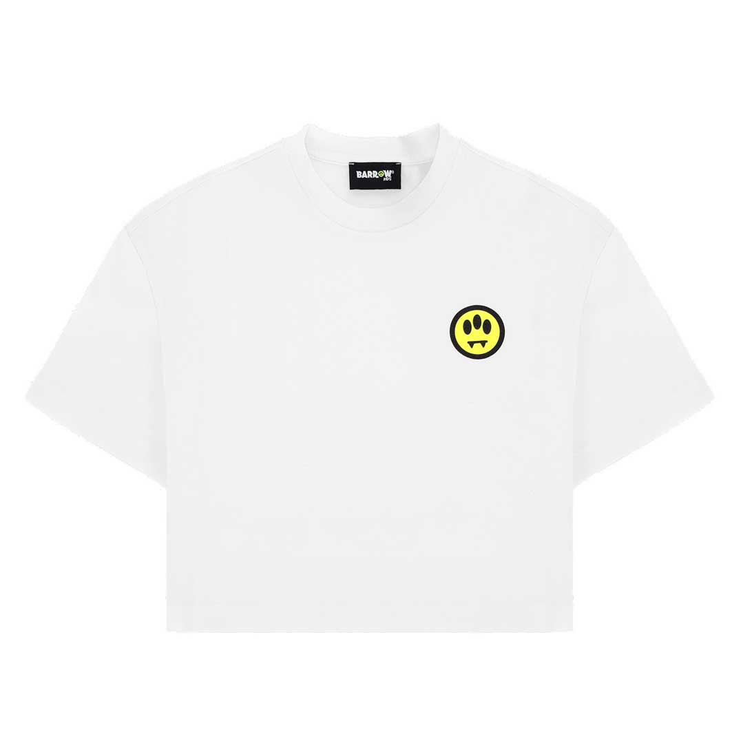 Biała, krótka koszulka dla dziewczynki BarrowS6BKJGTH099 002, wykonana z przewiewnej, bawełnianej dzianiny. Crop top basic.