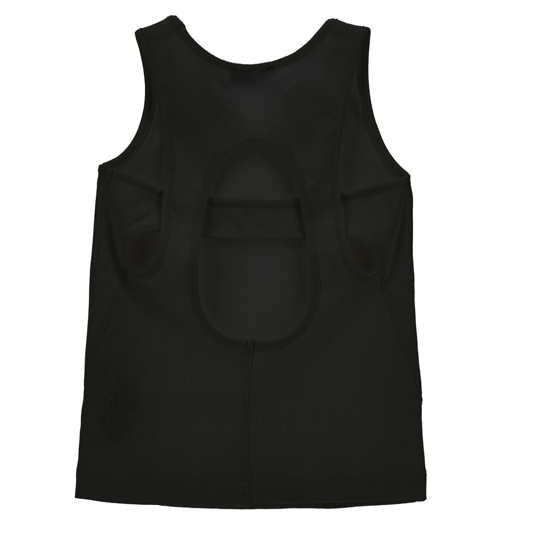 Czarny, bawełniany top dla dziewczynki Monnalisa 49G600 7041 0050. Koszulka o oryginalnym fasonie z nietypowymi wycięciami na plecach.