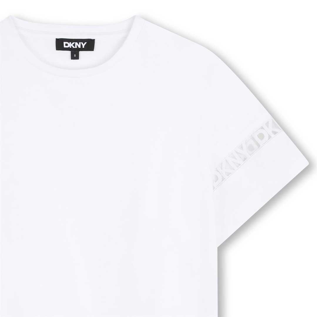 Bardzo obszerny t-shirt oversize dla dziewczynki DKNY D62623 10P.