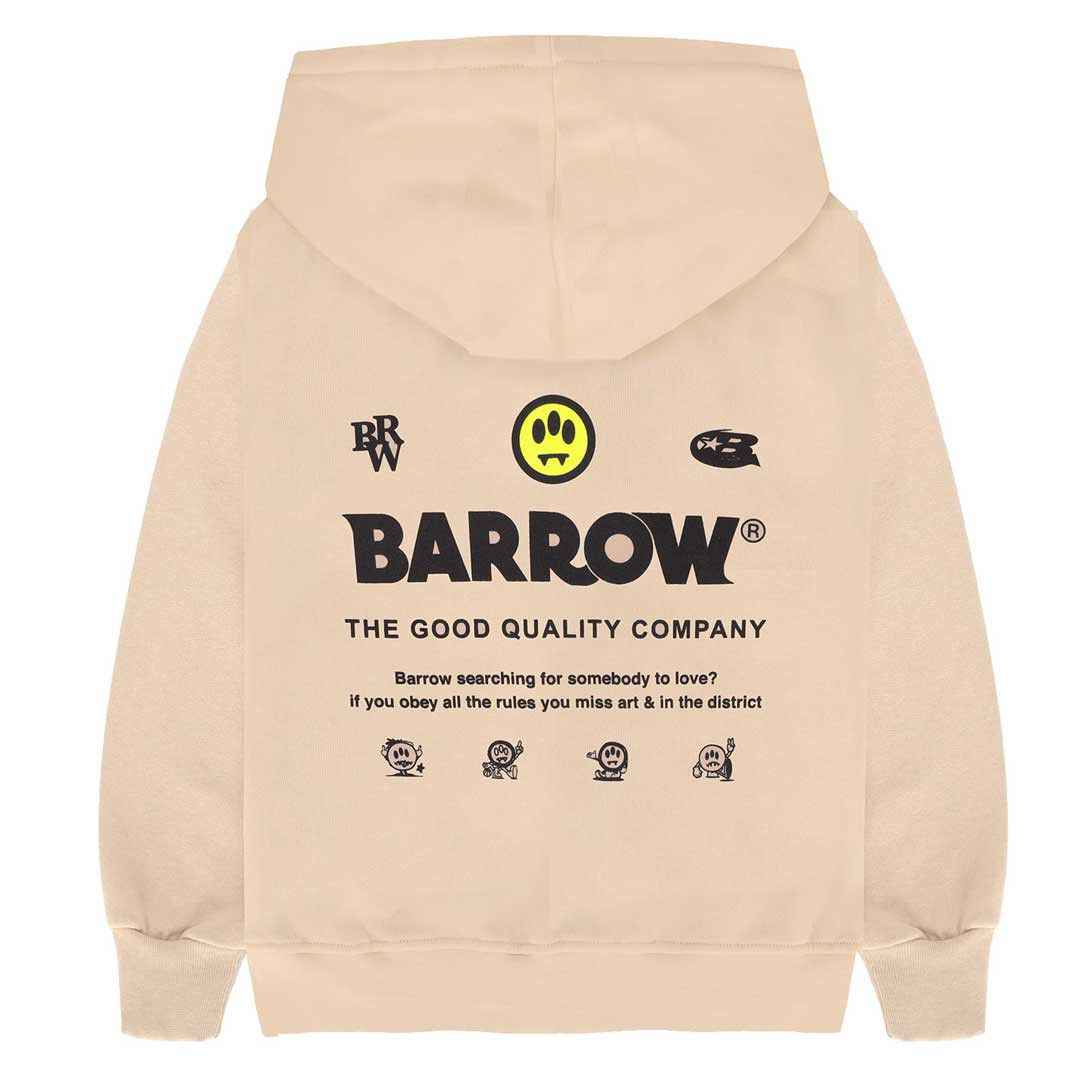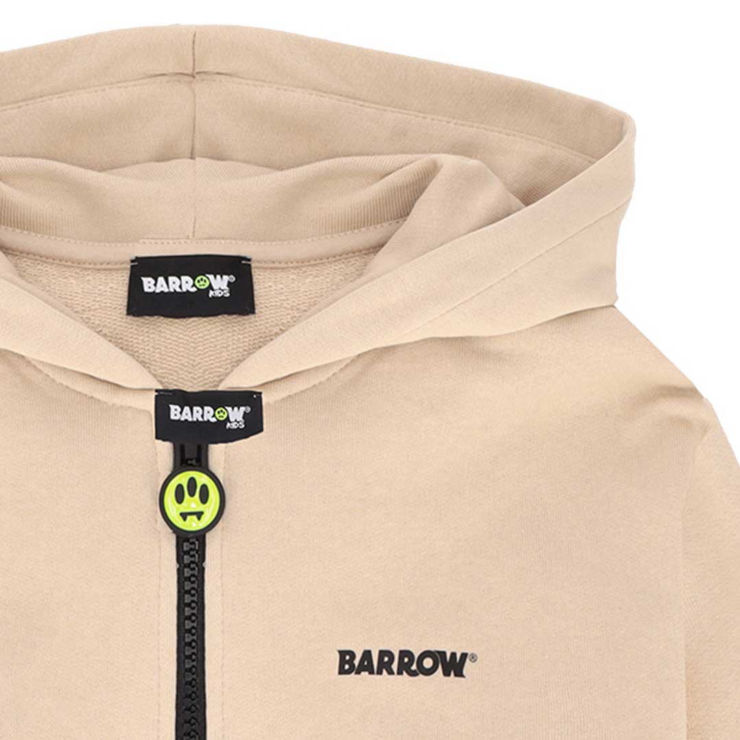 Bawełniana bluza dla dziecka unisex Barrow S6BKJUZH149 092. Model z kapturem. Suwak bluzy z charakterystyczna dla marki Barrow główką w formie logo.