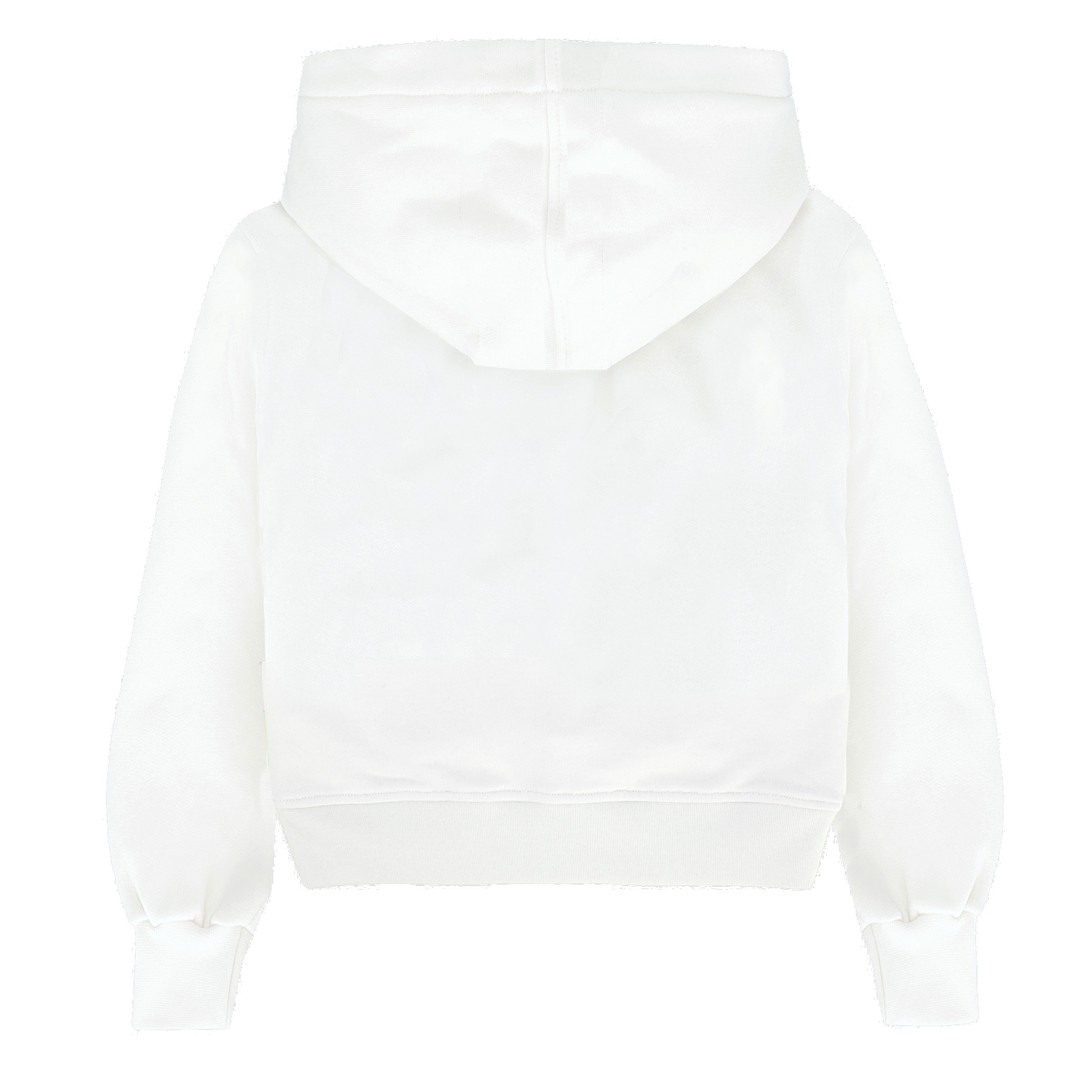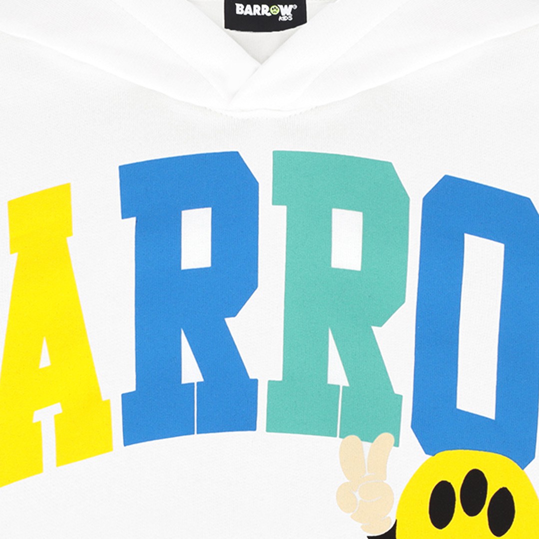 Biała, bawełniana bluza dla dziewczynki Barrow S6BKJGHS178 002, ozdobina kolorowym nadrukiem. Model z kapturem.