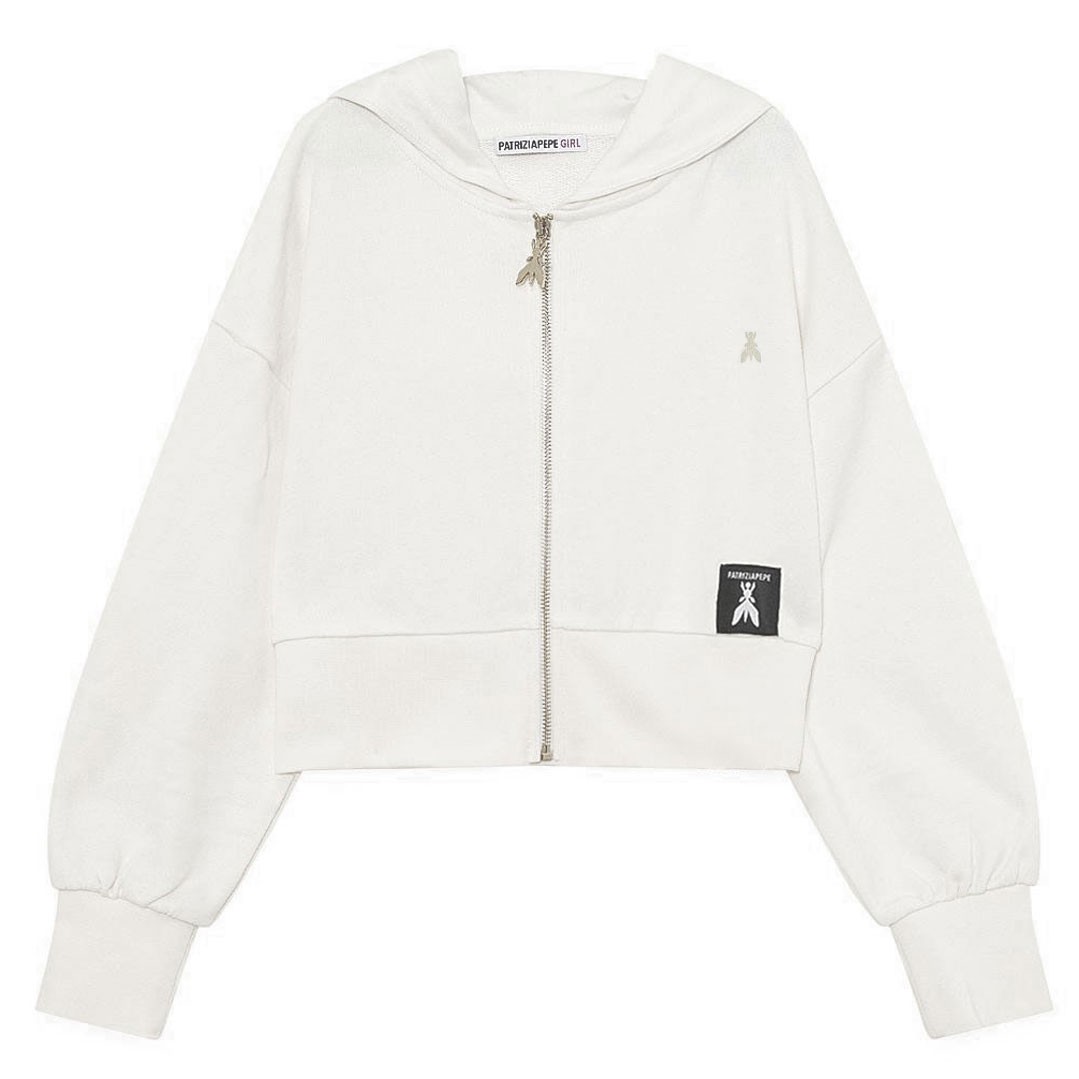 Bluza dla dziewczynki Patrizia Pepe 7M0823 J409 W146 jest dostępna w sklepie euroyoung.pl w kolorze ciepłej bieli w rozmiarach od 6 do 16 lat. Obszerny fason bluzy gwarantuje komfort i wygodę. Charakterystyczne dla marki Patrizia Pepe minimalistyczne wzornictwo ożywiają detale: kaptur, główka suwaka w kształcie ikony marki - muchy. Jeśli chcesz stworzyć kompletny dres możesz dokupić spodnie. Z bluzą 7M0823 J409 W146 doskonale prezentują się spodnie 7P0419 J409 W146, uszyte z tej samej dzianiny w tym samym kolorze, również dostępne w sklepie euroyoung.pl.