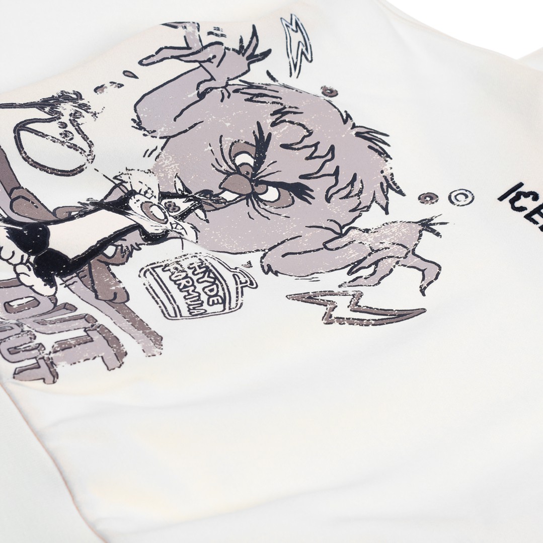 Bluza chłopięca Iceberg MFICE6100J OW wykonana z miękkiej dzianiny bawełnianej w kremowym kolorze. Bluza zakładana przez głowę z kapturem o obszernym kroju over fit. Przód bluzy ozdobiony charakterystycznym dla marki nadrukiem w stonowanym kolorze.
