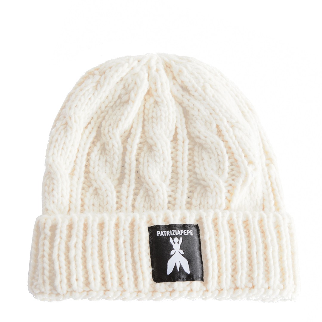 Zimowa czapka dziewczęca Patrizia Pepe 7F0018 wykonana z miękkiej przędzy w kolorze ciepłej bieli. Rozmiar uniwersalny, zgodnie z deklaracją producenta dla dziewczynki w wieku 6 - 16 lat.