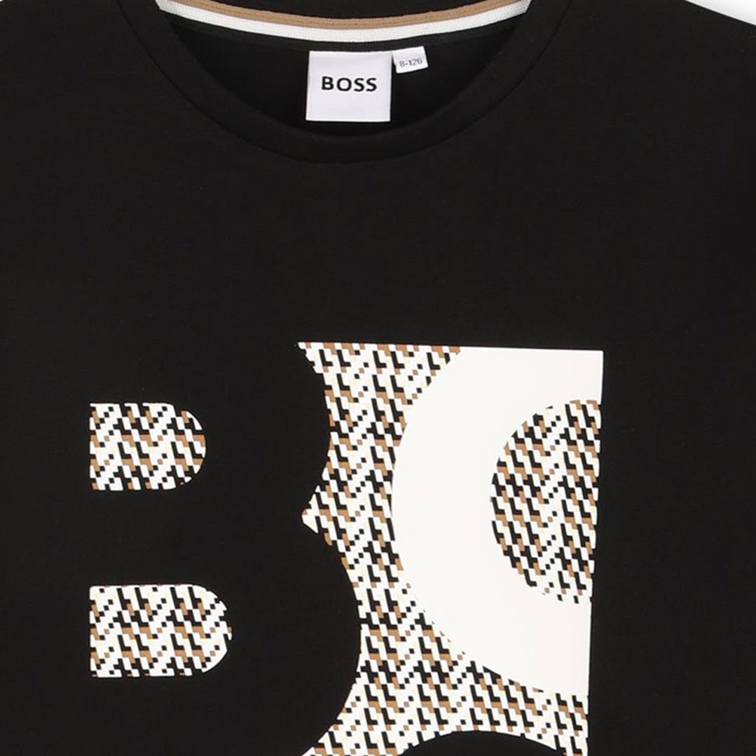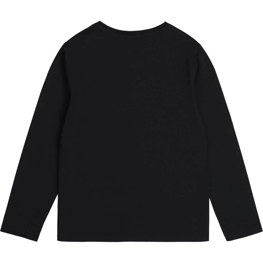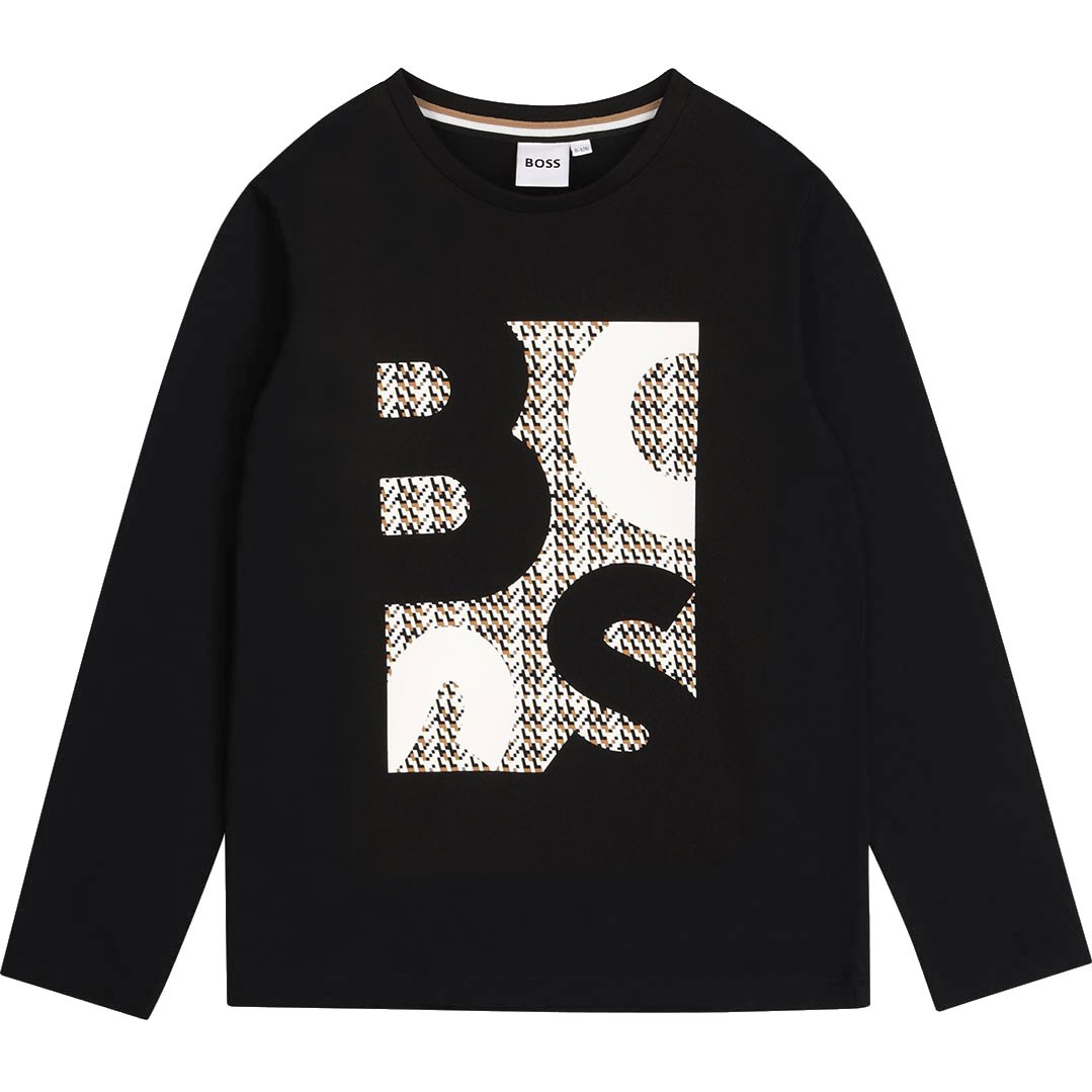 Czarna, chłopięca koszulka z długim rękawem Hugo Boss J52362 09B z nadrukiem.