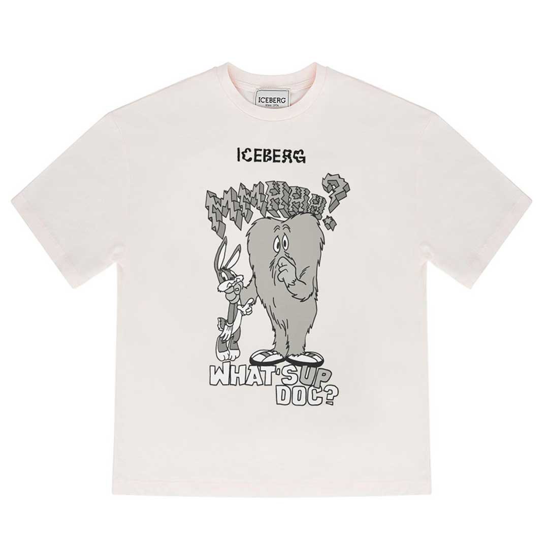 Bawełniany t-shirt dla chłopca Iceberg TSICE6104J OW. Koszulka w kolorze off white z zabawnym nadrukiem z przodu.