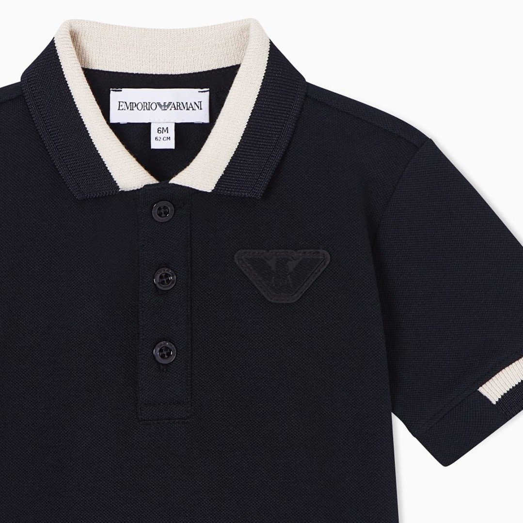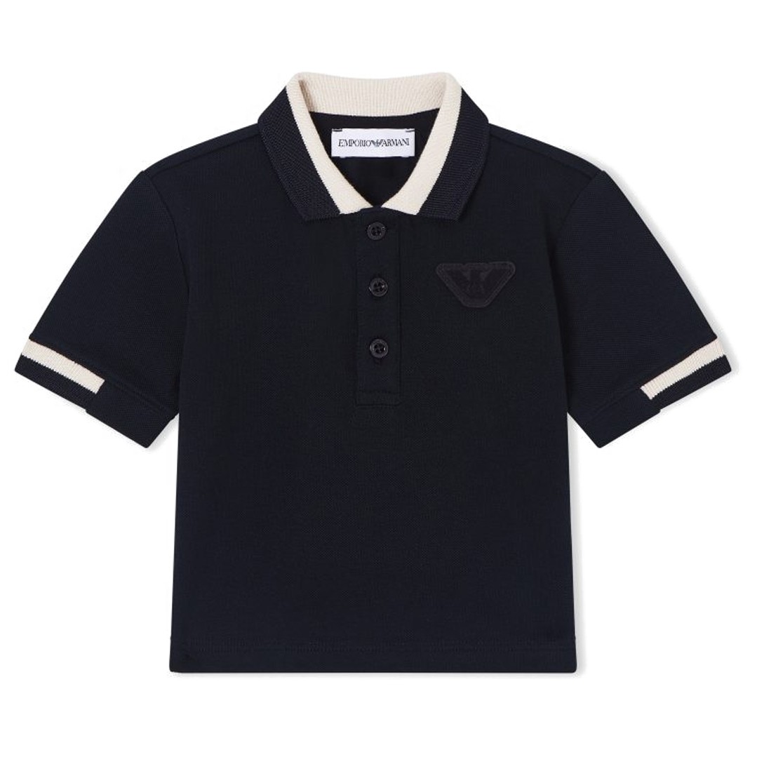 Eleganckie, granatowe polo dla małego chłopczyka Emporio Armani EB001322 AF16641 UB118. Detale w kremowym kolorze.
