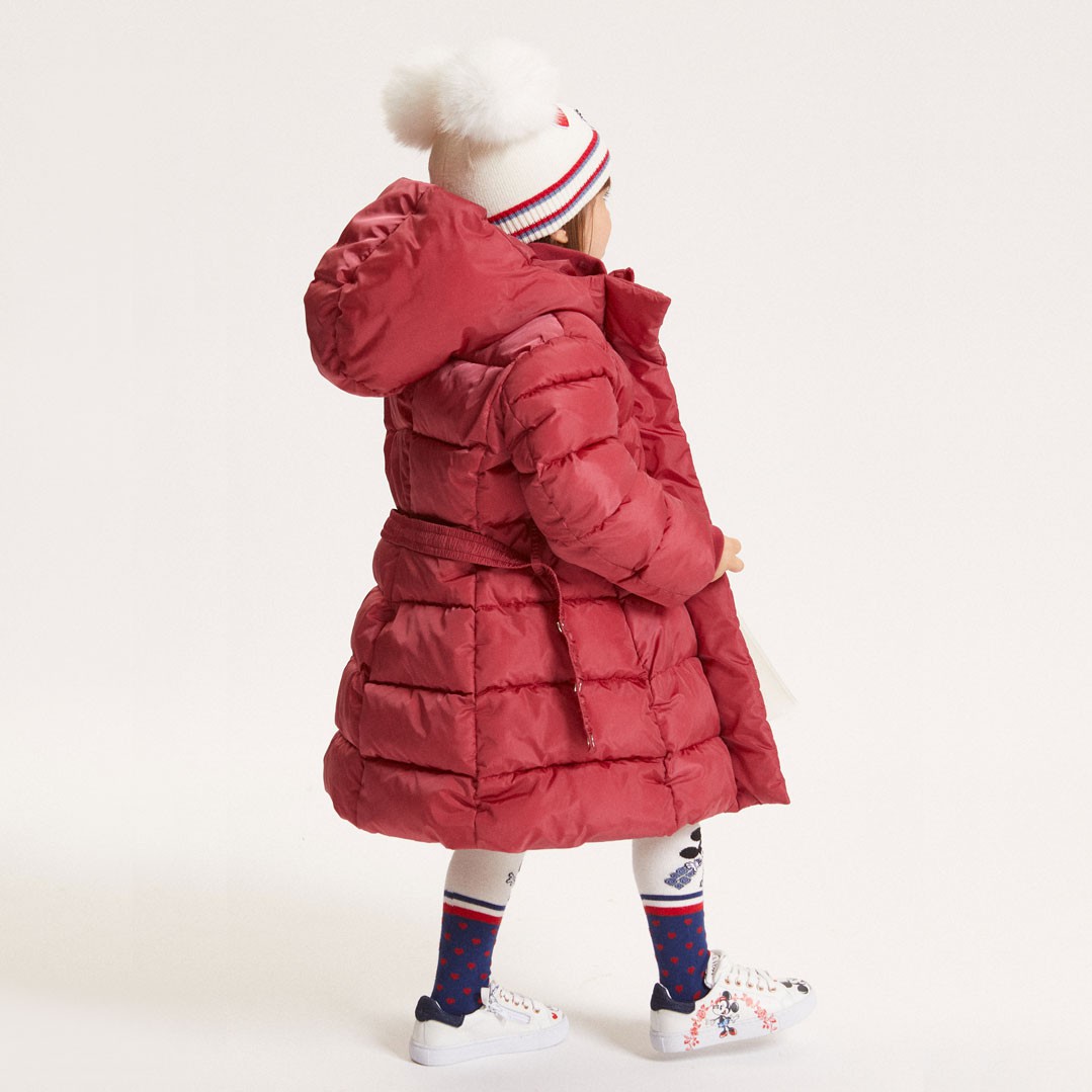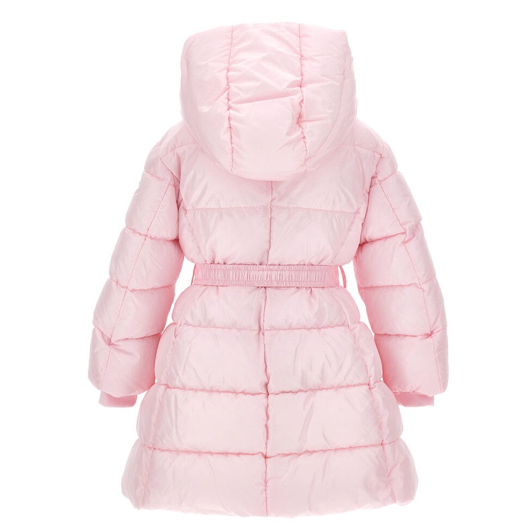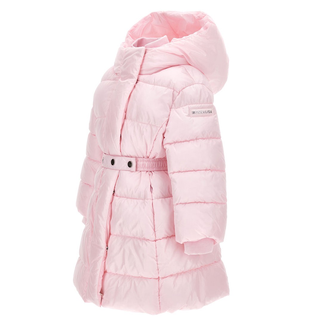 Ciepła, zimowa kurtka dla dziewczynki Monnalisa 17F101 6020 0090 w jasnym, różowym kolorze. Model o zgrabnym fasonie z ocieplonym kapturem i zapinanym na napy paskiem gwarantuje komfort termiczny podczas mroźnych dni. Kurtka siega kolan  i w zasadzie jest to płaszcz. Zapięcie na suwak jest kryte dodatkową plisą zapinaną na napy. W rękawach wszyto ściągacze chroniace przed chłodem. Pudrowy róż kurtki 17F101 6020 0090 jest ulubionym kolorem zwłaszcza małych dziewczynek. Kurtka pasuje do ubrań dziewczęcych Monnalisa Bimba PreFall Pastel Vibes i Monnalisa Bimba PreFall Romantic Animalier.