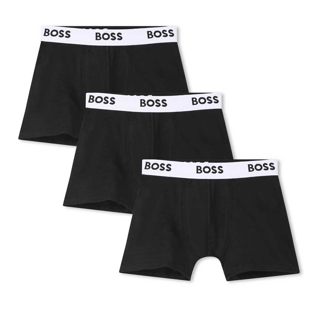 Bokserki dla chłopca Hugo Boss J52663 09B. Komplet składający się z 3 par w czarnym kolorze.