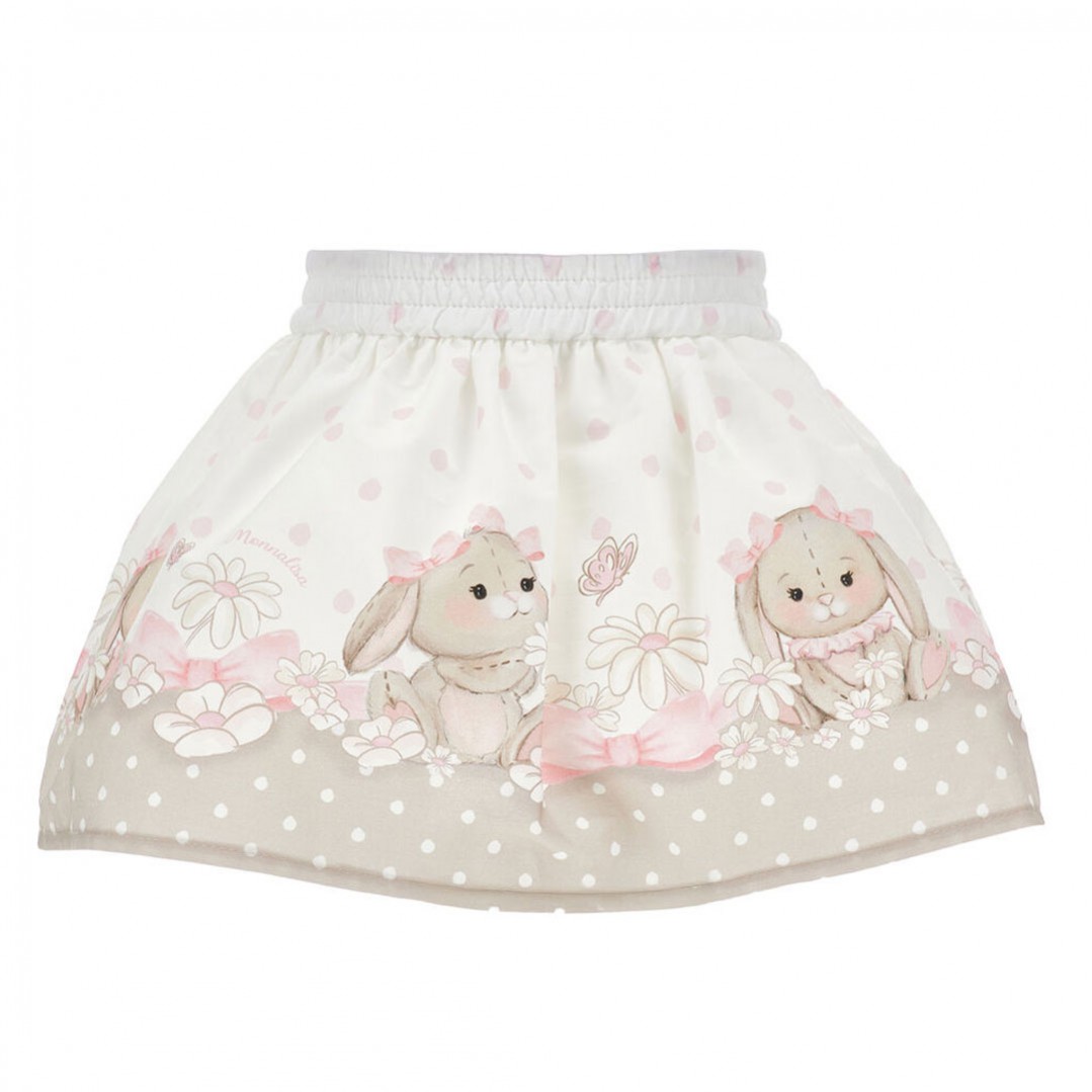 Spódniczka dla małej dziewczynki Monnalisa 31G702 7663 019B dostępna jest w sklepie euroyoung.pl w rozmiarach od 6 miesięcy do 6 lat. Wygodny fason bez zapięcia z szeroką gumą w pasie umożliwia dziecku samodzielne zakładanie spódnicy. Spódnica Monnalisa 31G702 7663 019B uszyta jest z bawełnianego, delikatnego płótna, które drukowane jest w uroczy wzór z króliczkiem w roli głównej. Spódnica posiada bawełnianą gładką podszewkę.