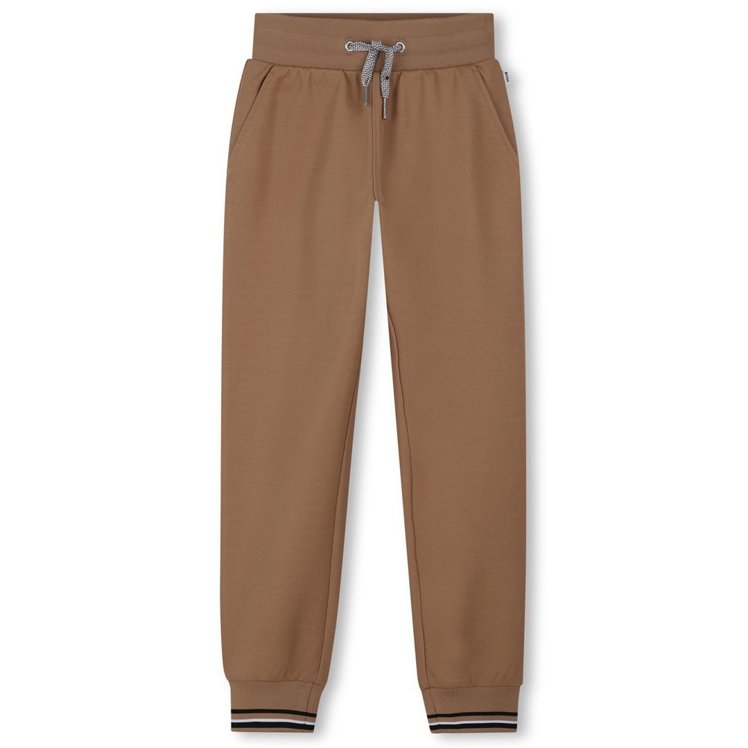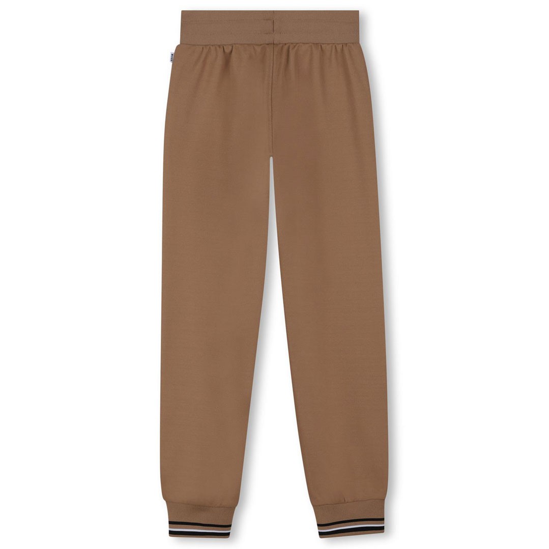 Sportowe spodnie dresowe Hugo Boss, przeznaczone dla chłopca w wieku 4 - 16 lat. Klasyczny fason ze ściągaczami i trokiem w pasie. Spodnie uszyte z dzianiny pique w karmelowym kolorze.