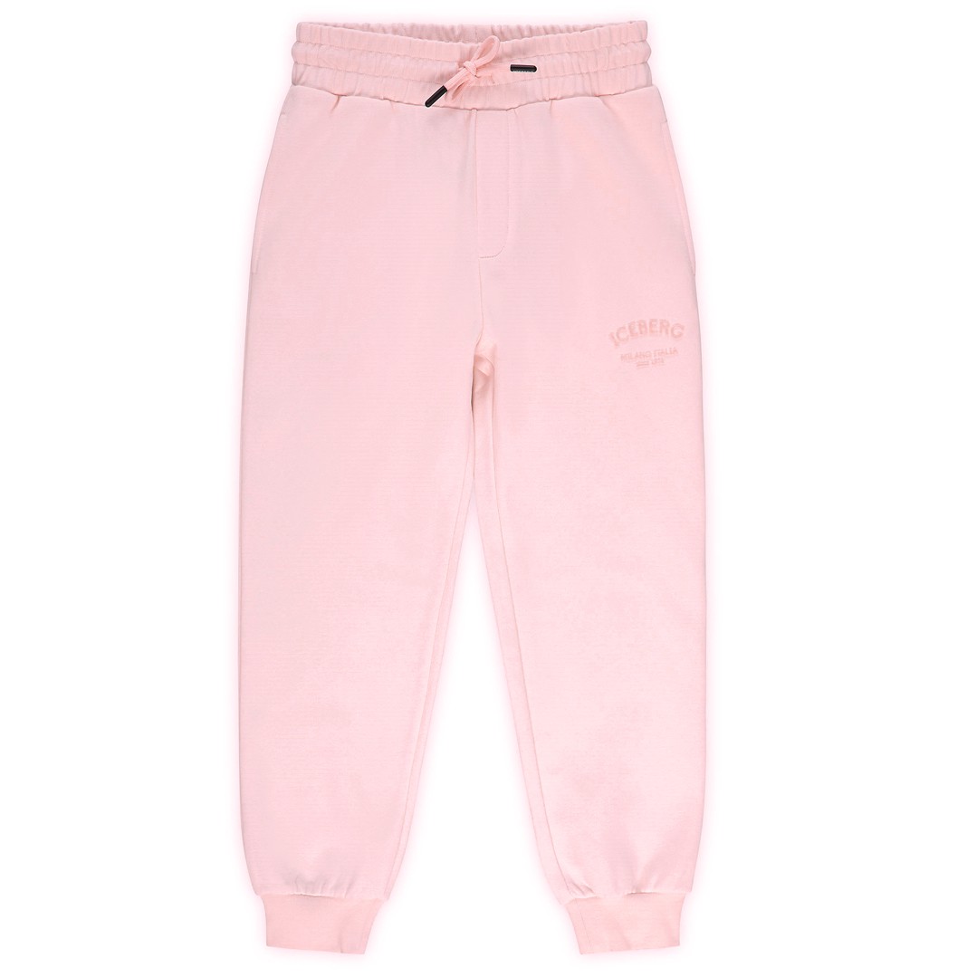 Dziewczęce spodnie dresowe Iceberg w pudrowym, różowym kolorze. Model basic.