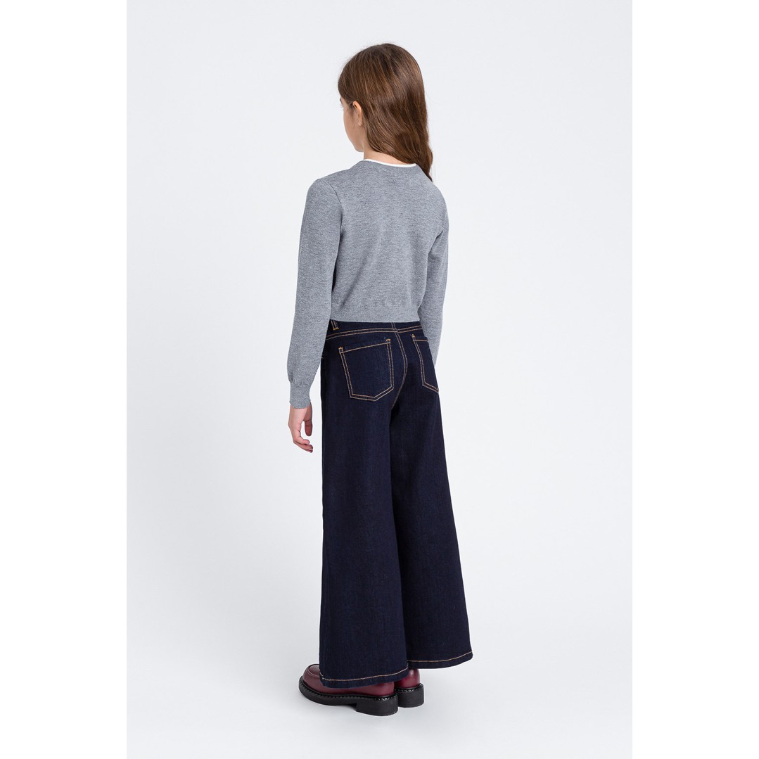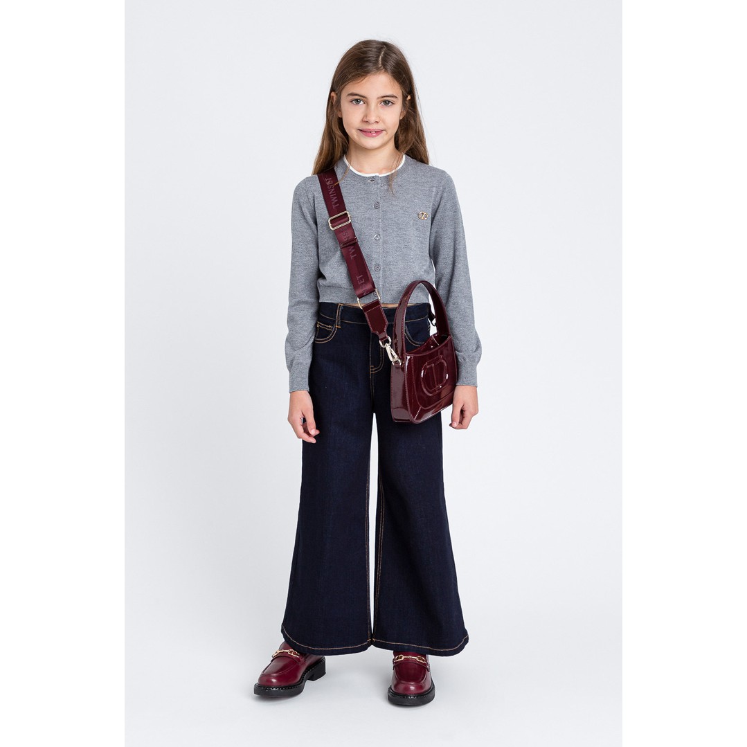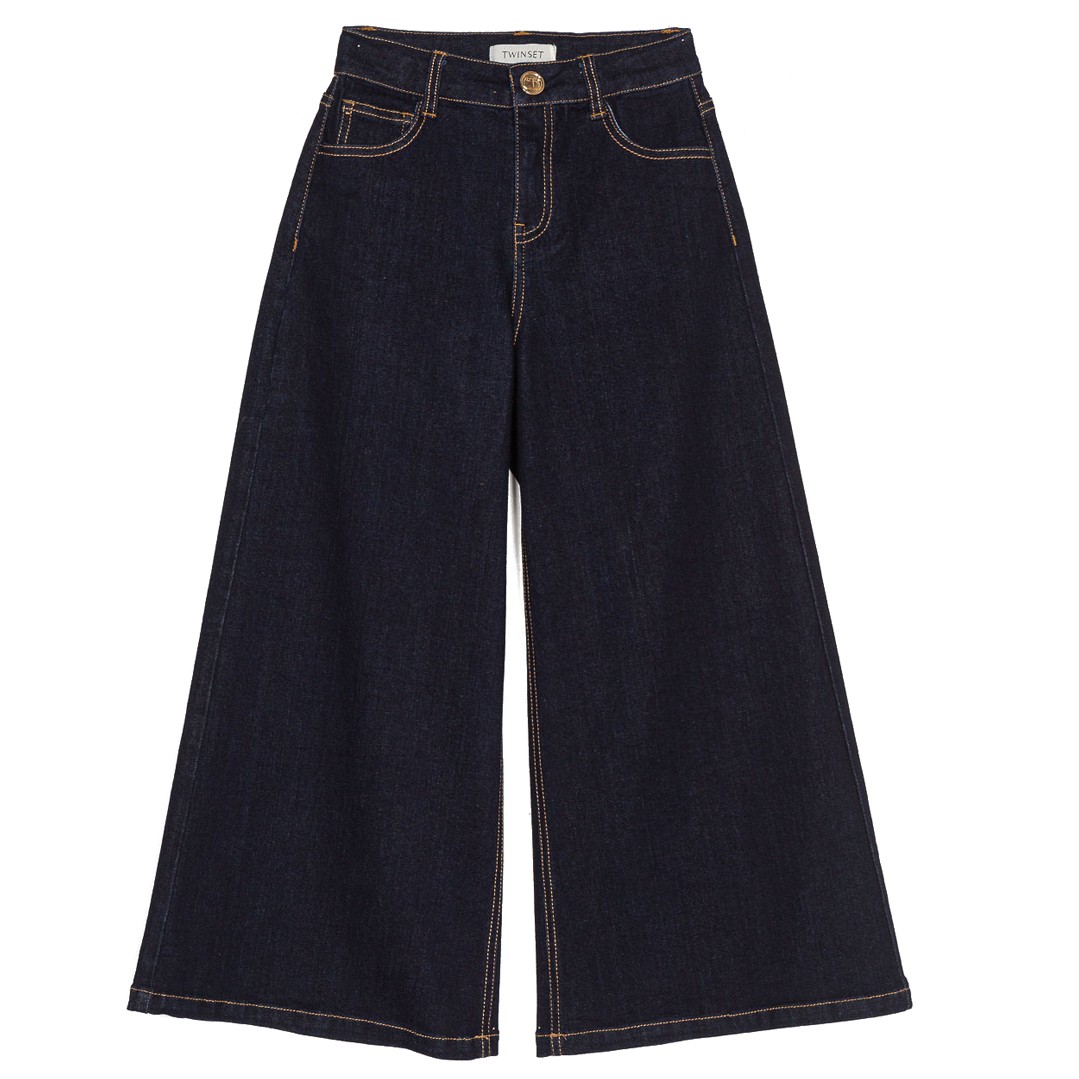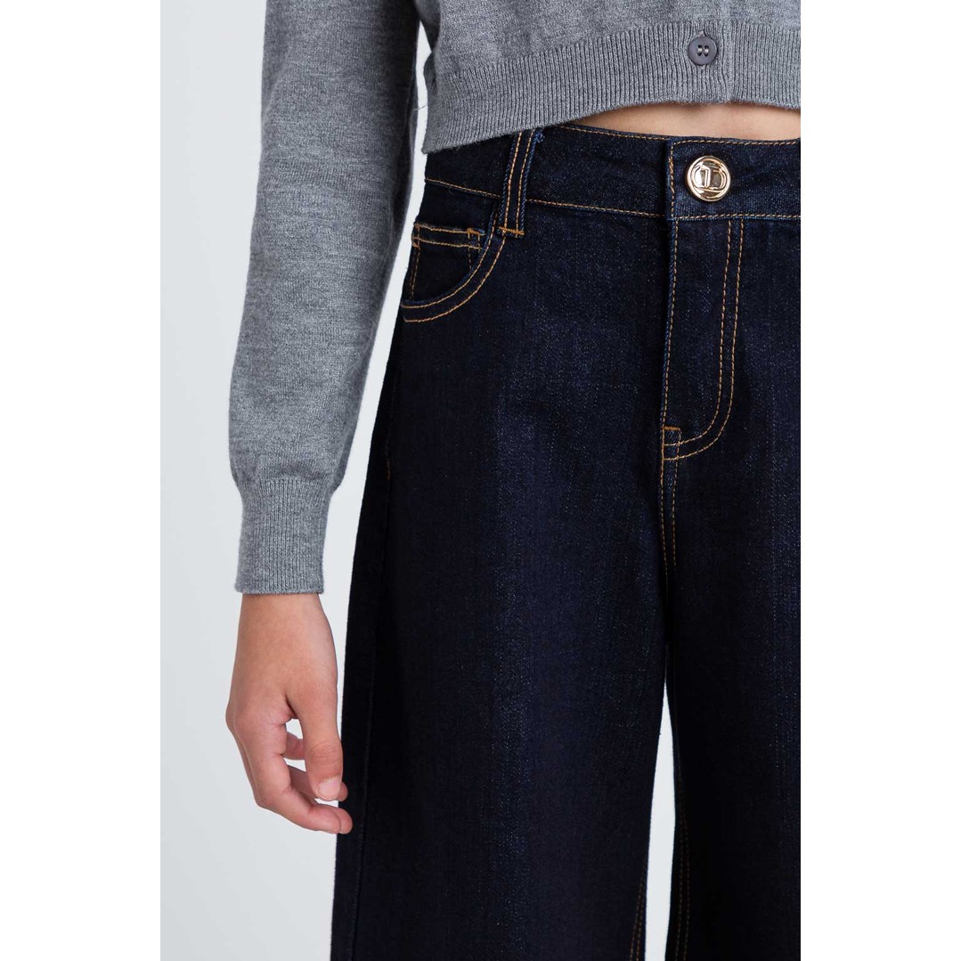 Miękkie, granatowe jeansy dziewczęce Twin Set 252GJ2280. Spodnie w modnym fasonie z szerokimi nogawkami.