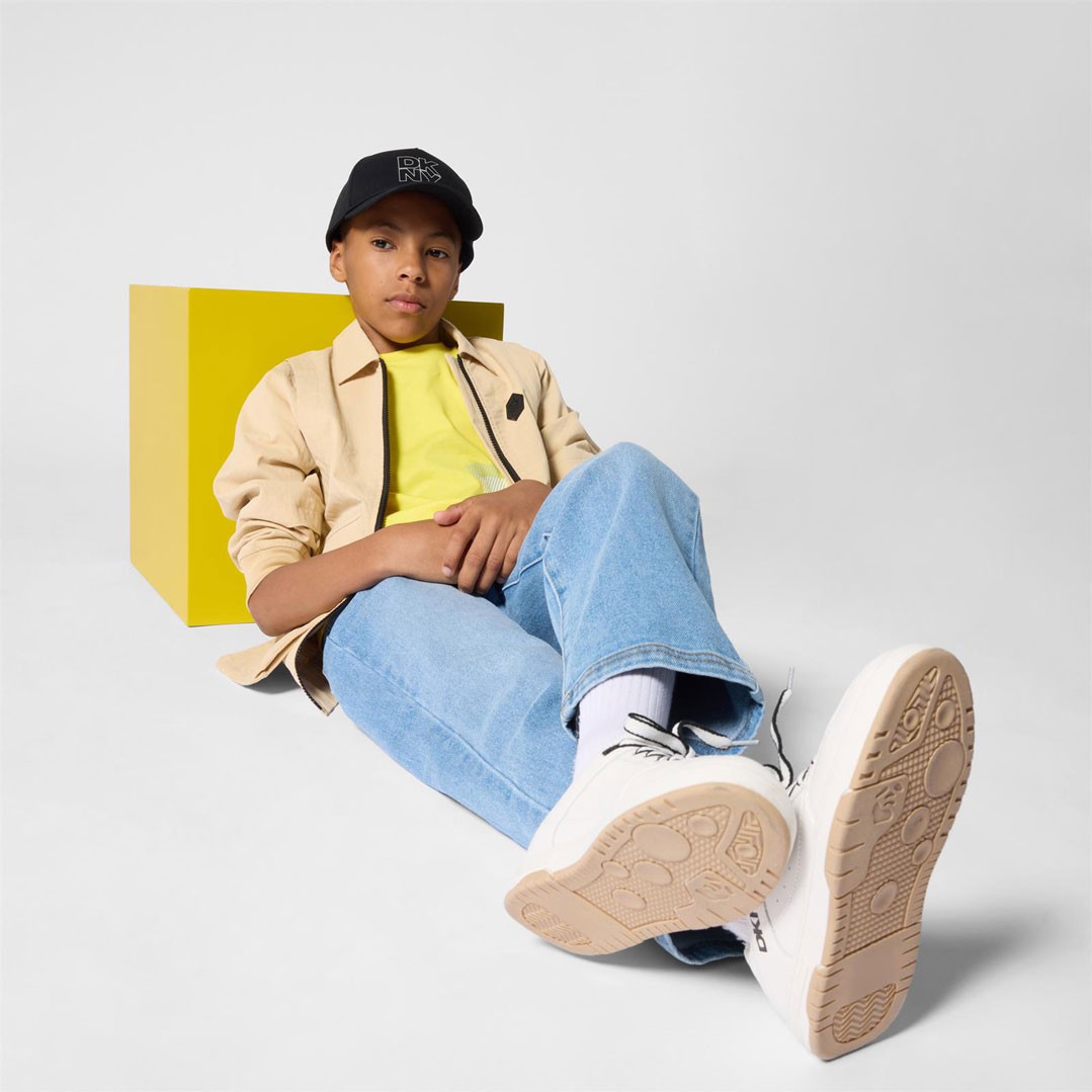 Jeansy dla dziecka DKNY D62552 Z03. Spodnie unisex dla chłopca i dziewczynki w wieku od 4 do 16 lat. Model z 5 kieszeniami i regulacją obwodu pasa do rozmiaru 10 lat.