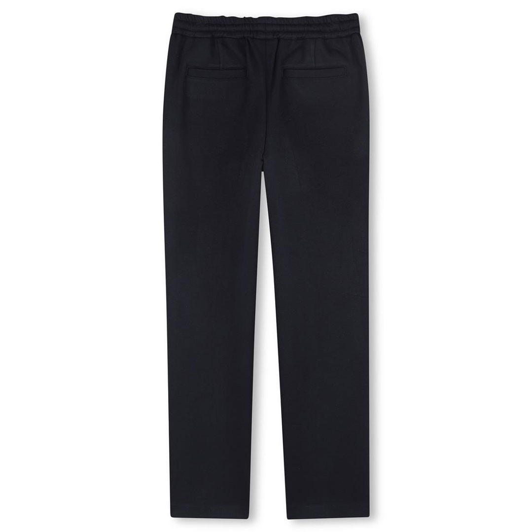 Granatowe, eleganckie spodnie dla chłopca Hugo Boss J52914 862. Modny fason z elastyczną talią bez zapięcia, z 2 kieszeniami z przodu i 2 z tyłu.