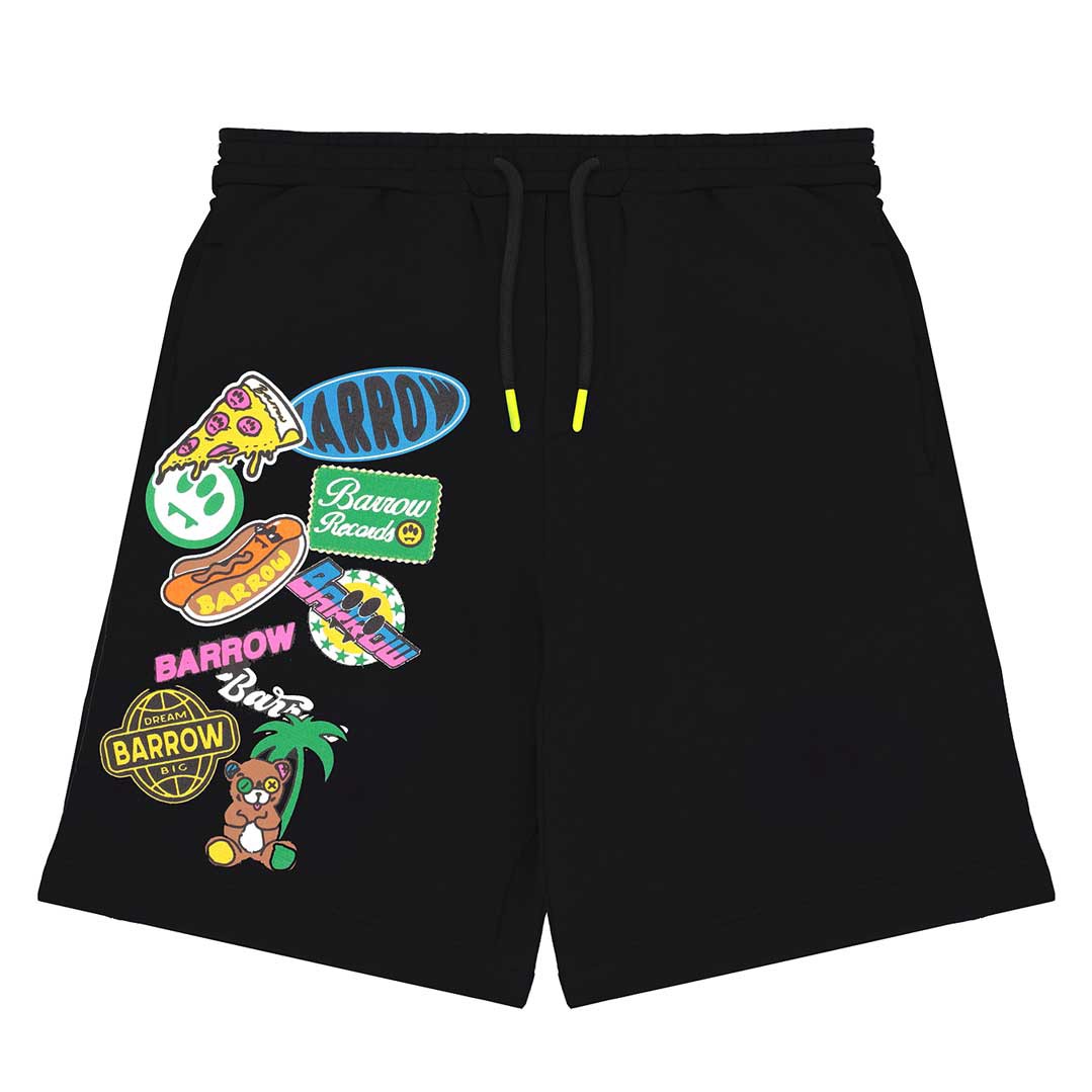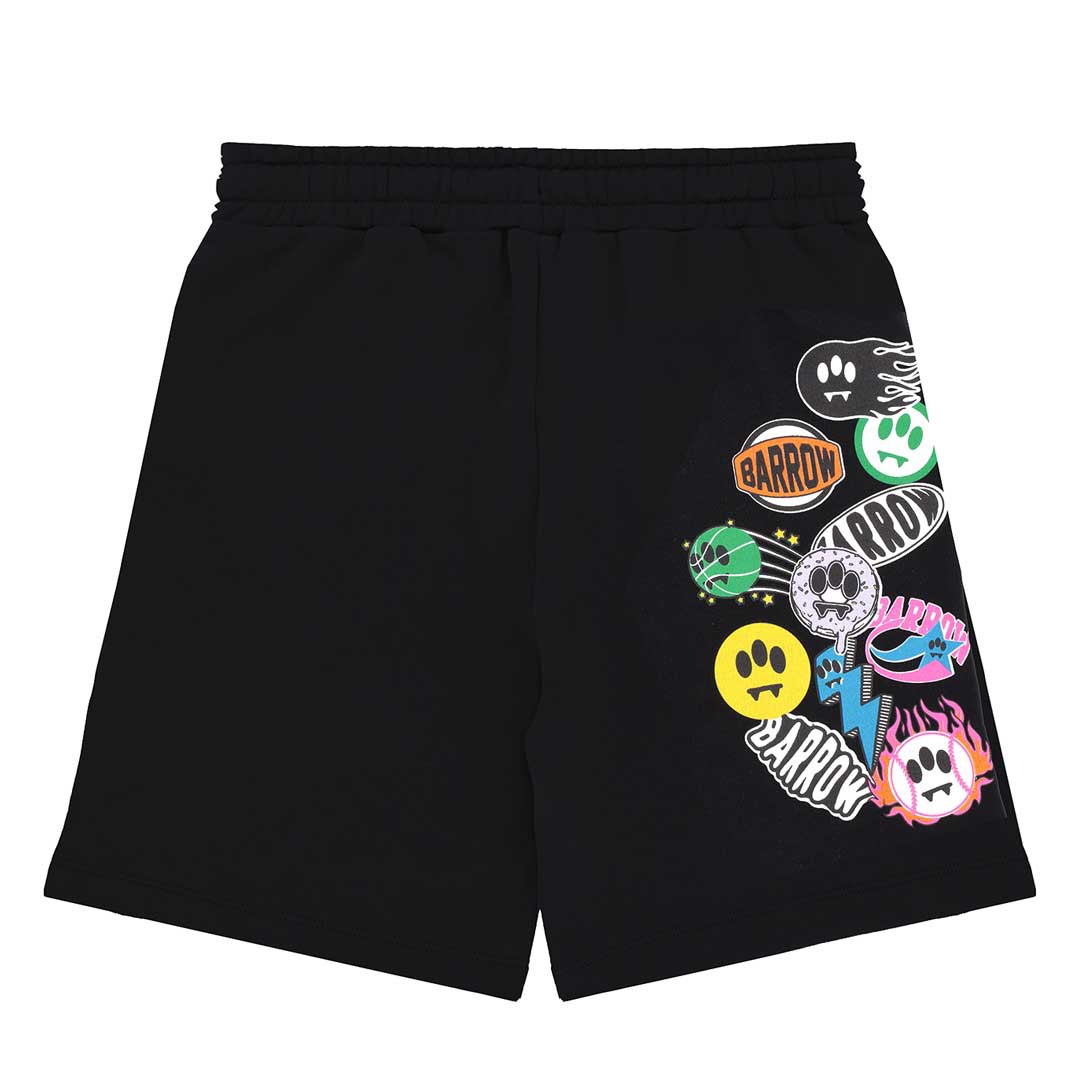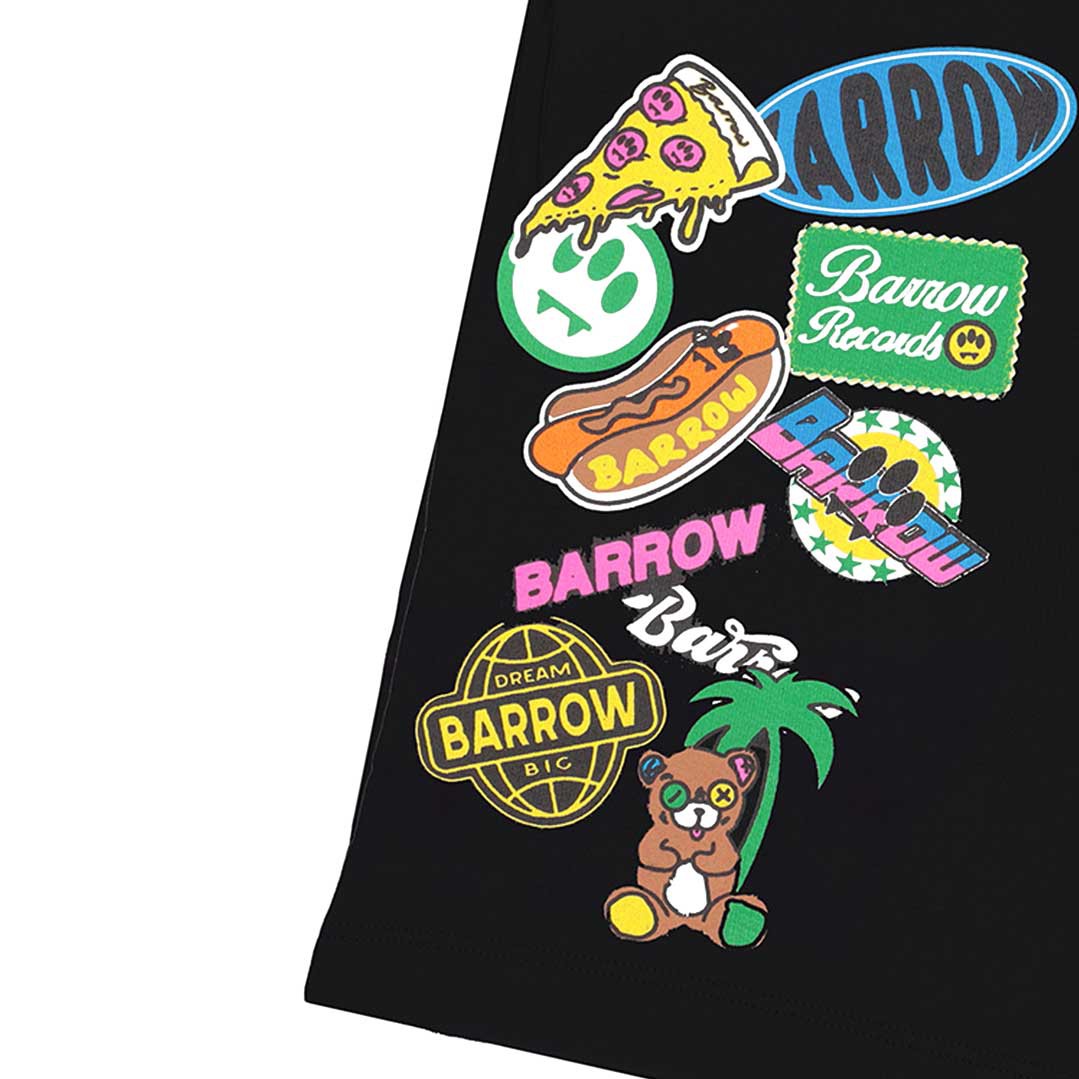 Czarne, bawełniane bermudy dla dziecka Barrow S6BKJUBE041 110. Swobodny fason szortów i bawełniana dzianina, z których są uszyte, zapewniają komfort i wygodę. Szorty ozdobione asymetrycznie umieszczonym, kolorowym nadrukiem. Model unisex.