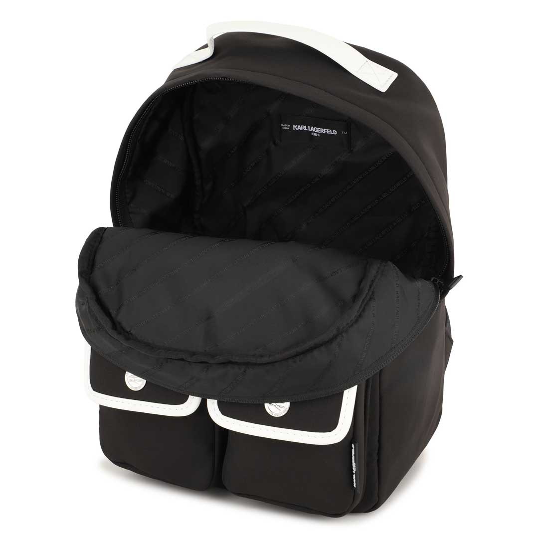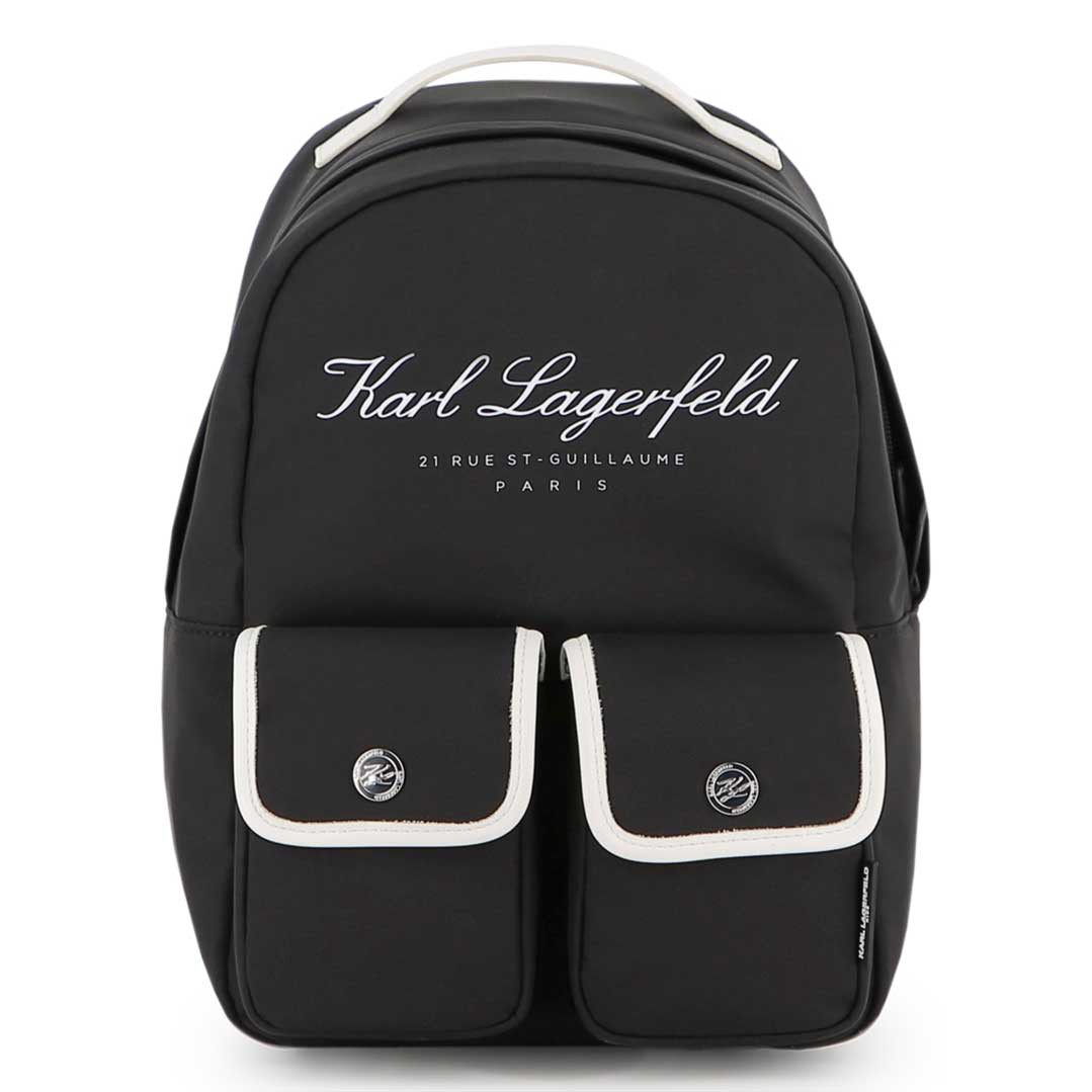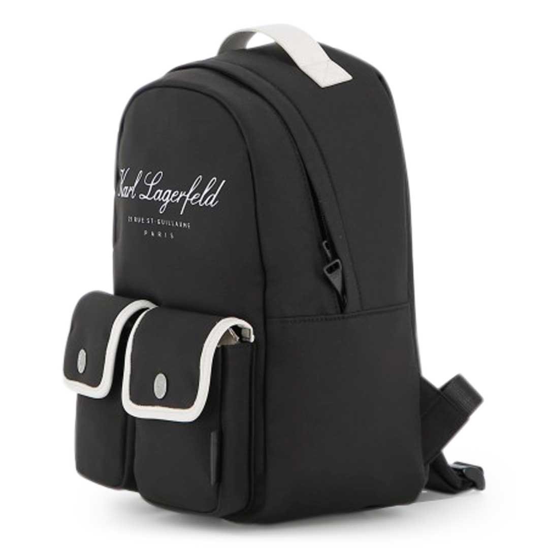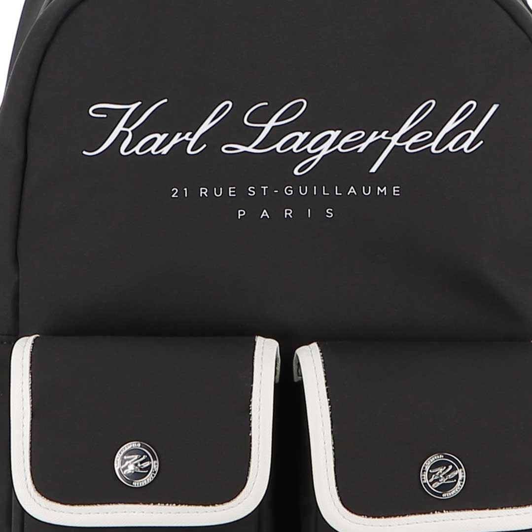 Czarny plecak Karl Lagerfeld Z31216 09B z białymi detalami.
